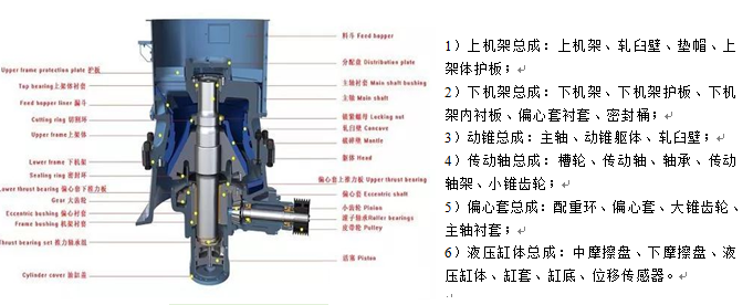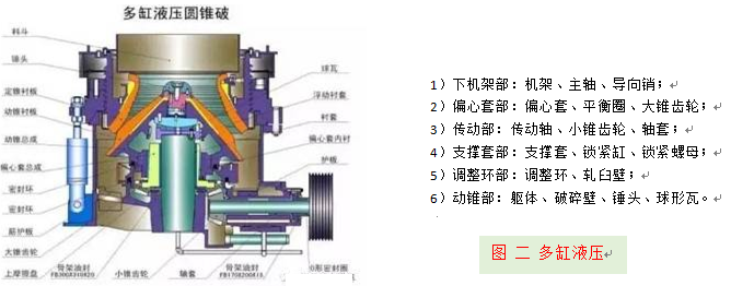 | 结构组成 | 上机架,下机架,动锥,传动轴,偏心套,液压缸体 | 下机架,偏心套,传动,支撑套,调整环,动锥 | 附图一、图二 |